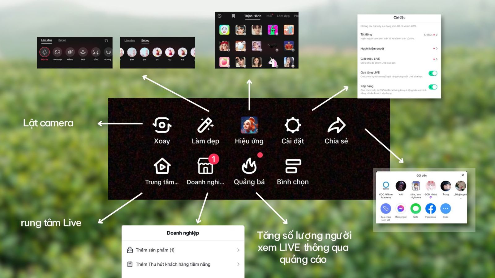 Một số công cụ tích hợp trên nền tảng TikTok với các công năng khác nhau để tối ưu trải nghiệm cho người Livestream TikTok.