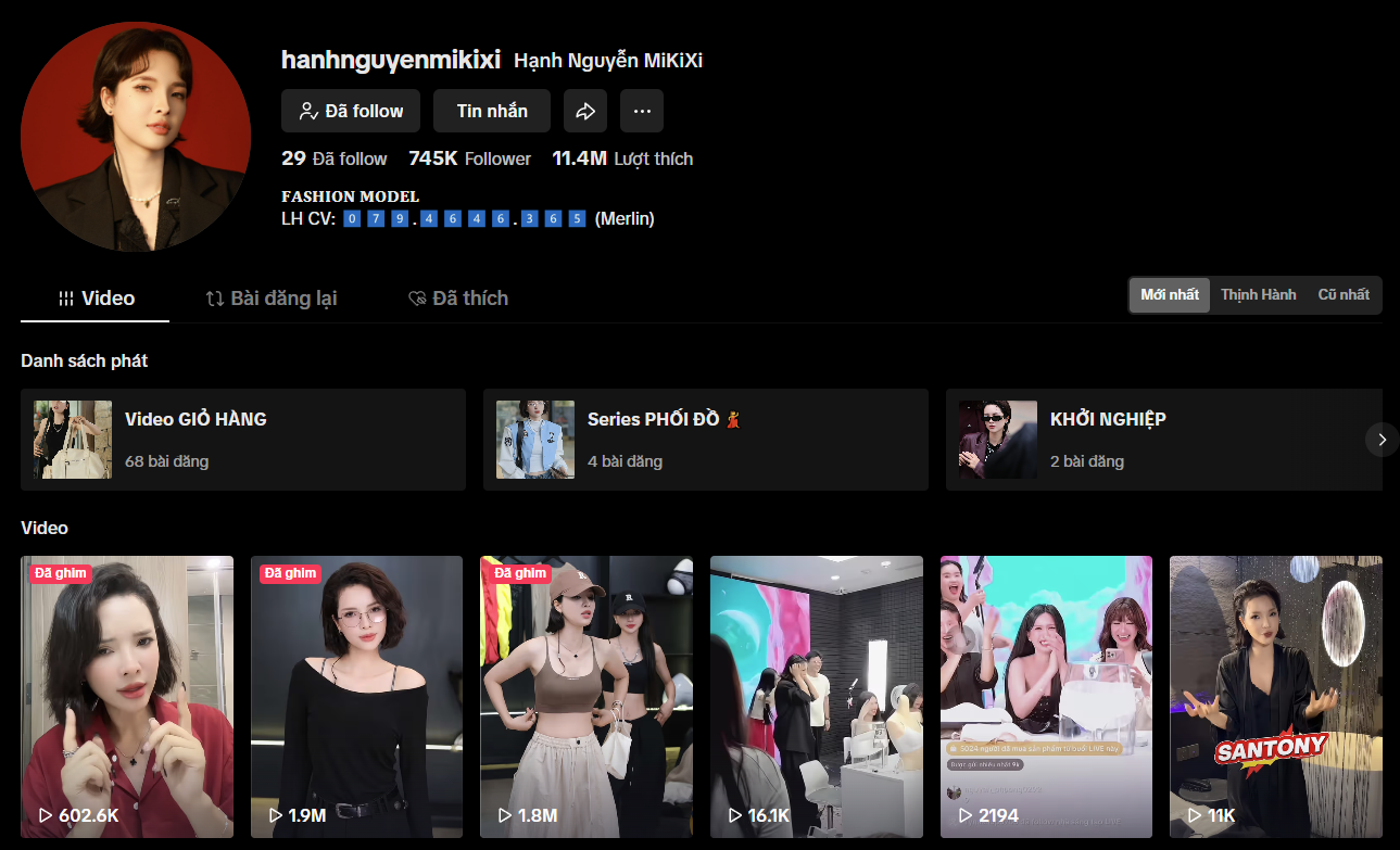 Kênh TikTok: hơn 700.000 followers, nội dung review chuyên sâu.