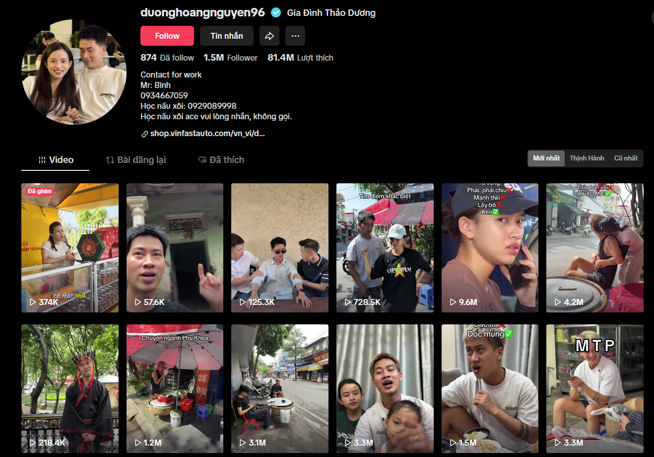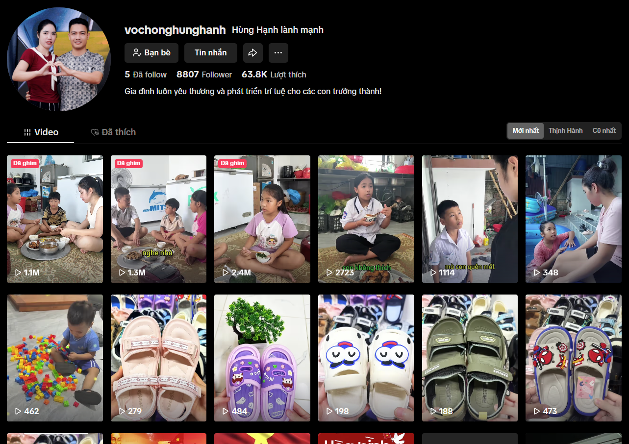 Đây là trường hợp thành công điển hình khi xây kênh TikTok gia đình kết hợp bán hàng Affiliate. Từ các thử thách nhỏ trong gia đình, đến những video giáo dục con nhẹ nhàng, kênh này giữ được sự cân bằng giữa giải trí và truyền tải giá trị.