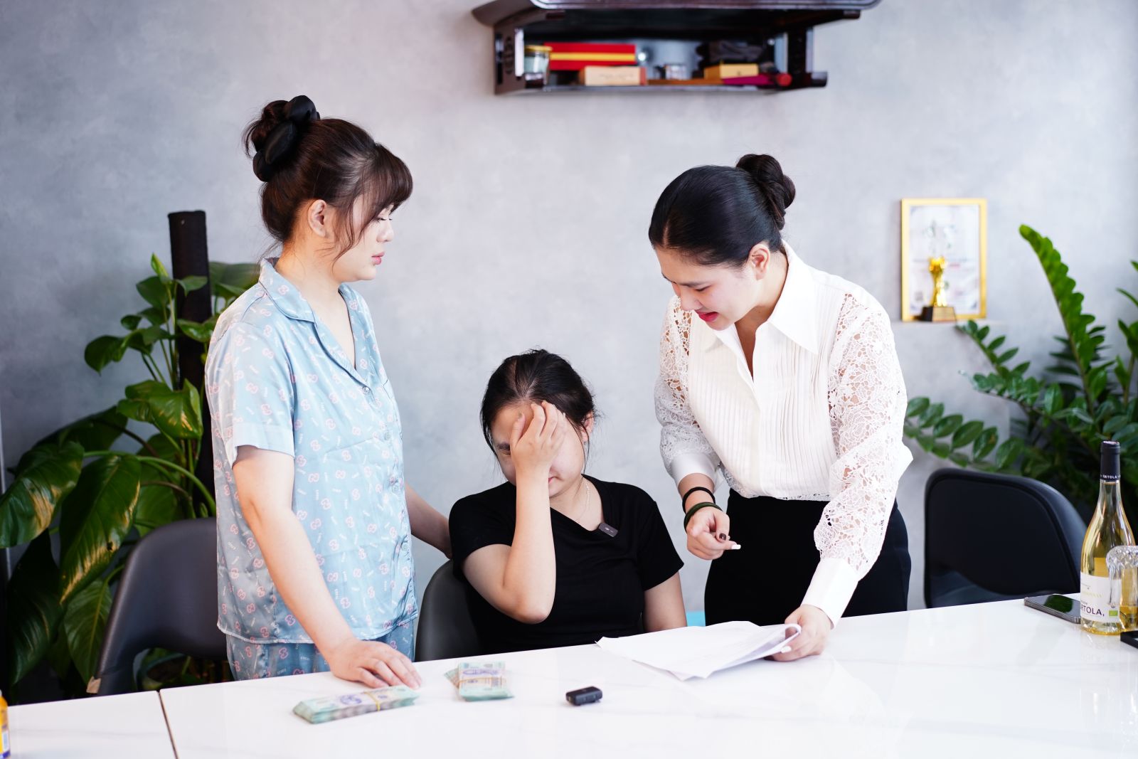 Đạo diễn Vi Ngọc Lan trong ảnh hậu trường của buổi quay Kênh TikTok chủ đề Gia đình với tuyến nội dung đóng diễn cùng các diễn viên truyền hình. Ảnh. Dalali Academy